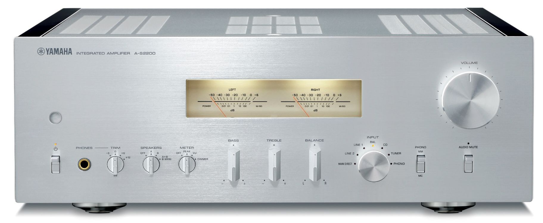 The Mechanical Ground Concept adopted in the A-S2200 maximizes rigidity and reduces any unwanted vibration, achieving expressive and rhythmic bass. Further rigidity is achieved with the large power transformer, block capacitors and heat sink directly bolted to the chassis while the feet, with bolts directly welded to the main chassis, provide further reinforcement for absolute rigidity.